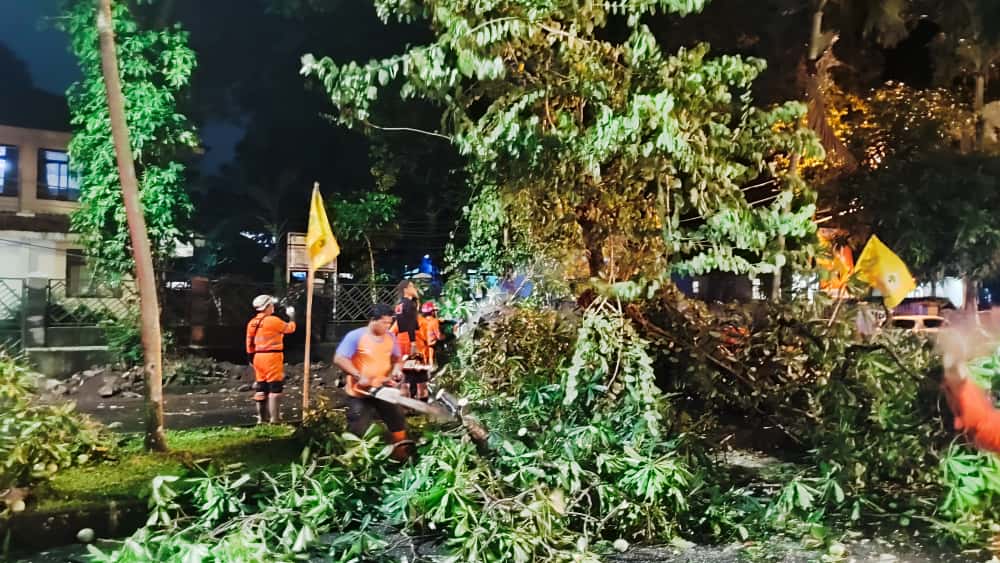 BOGOR-KITA.com, BOGOR – Dua pohon besar tumbang di kawasan Jalan Tirto Adhi Soerjo, tepat di antara Kantor Sekretariat Persatuan Wartawan Indonesia (PWI) Kota Bogor dan Kantor Kelurahan Tanah Sareal, pada Selasa malam (21/10/2025) sekitar pukul 19.55 WIB.