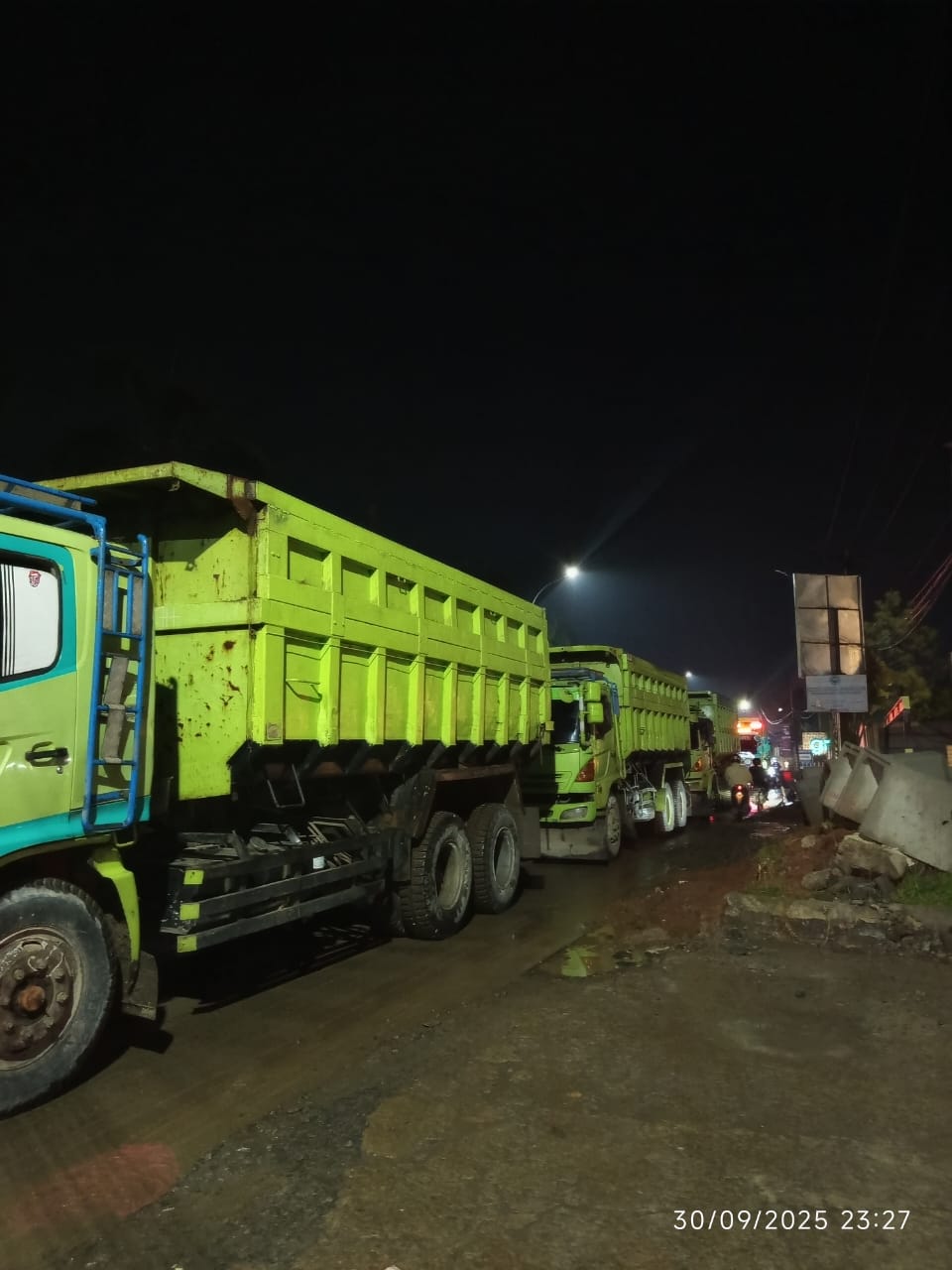 “Bagaimana ini Pak Gubernur, katanya ditutup. Faktanya truk – truk tronton dari arah gunung (area galian tambang-red) masih banyak lalu lalang di jalanan,” ungkap seorang warga yang merekam kejadian, Rabu dini hari (1/10/2025)